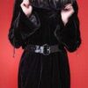 Black Mink Stroller Silver Fox Fur Hood 88123