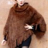 Brown Knitted Mink Poncho Hood Fringes