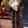 Full Length Brown Sheared Mink Fur Coat Raccoon Collar 66111