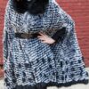 Sheared Rex Rabbit Cape Black Fox Fur Collar 7788